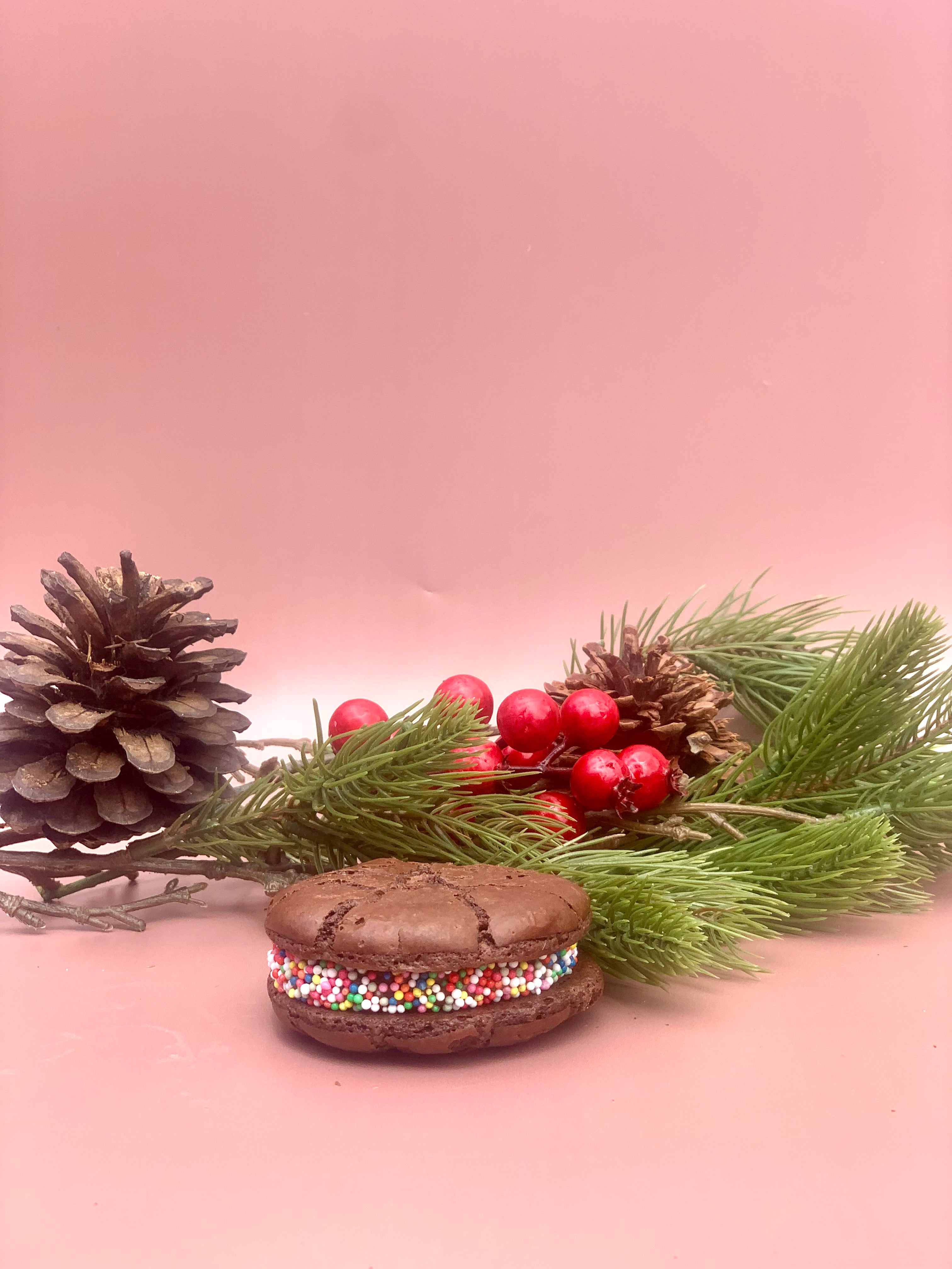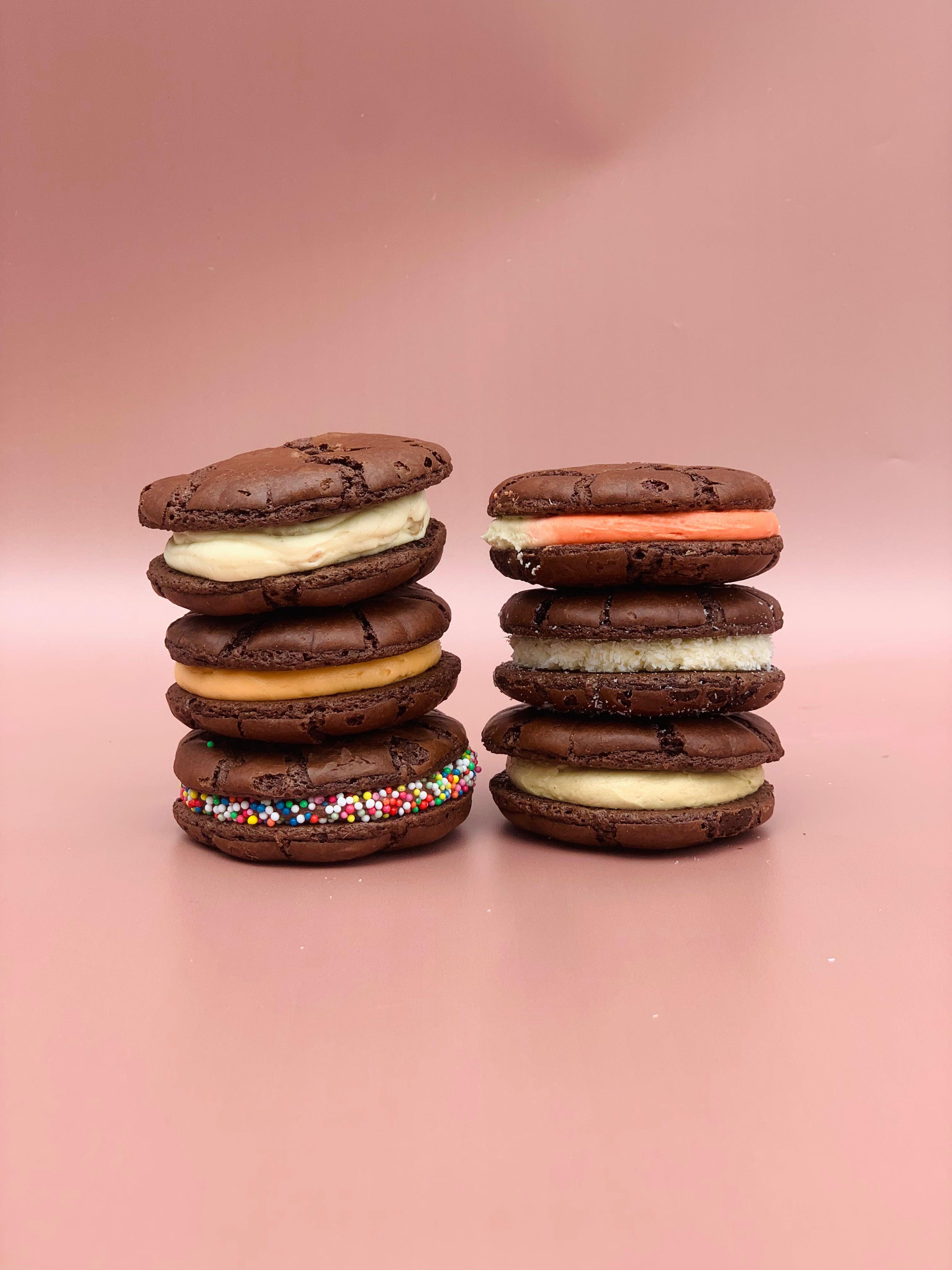 Choc Sprinkles: chewy choc brownie cookies filled with chocolate & sprinkle buttercream